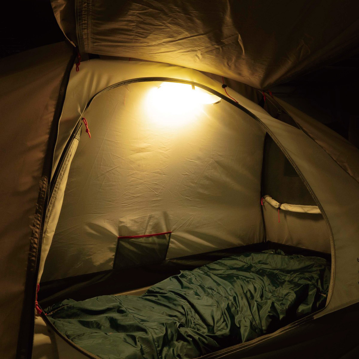 付属のバンドを使用してタープやポールに固定でき、マグネットで金属部に付けて使用可能。