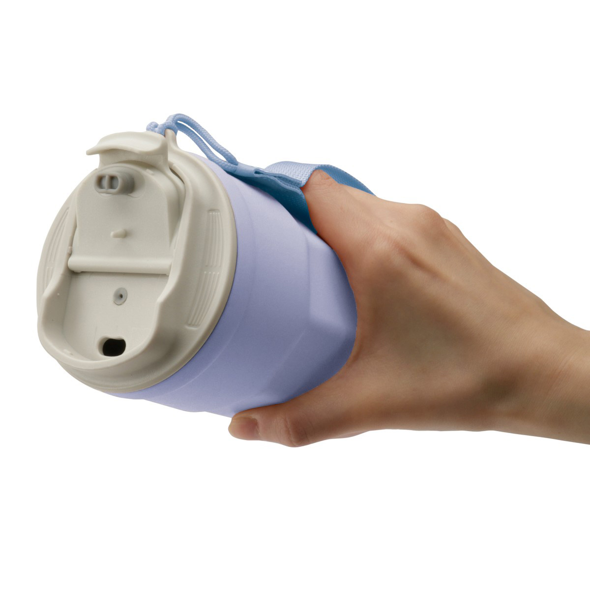 飲む際の落下を防ぐストラップ付。