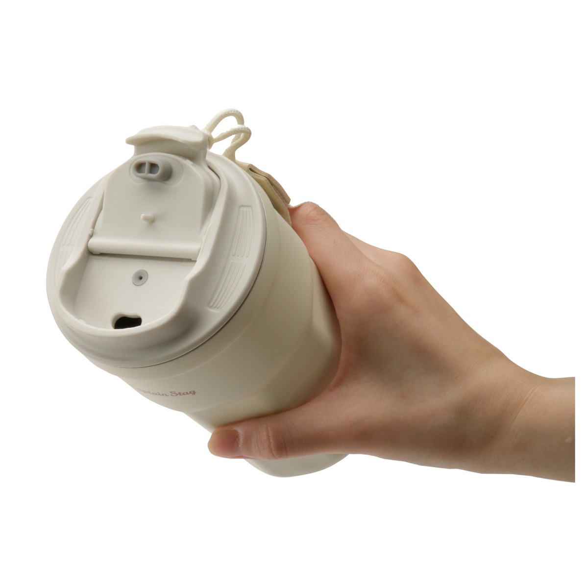 飲む際の落下を防ぐストラップ付。