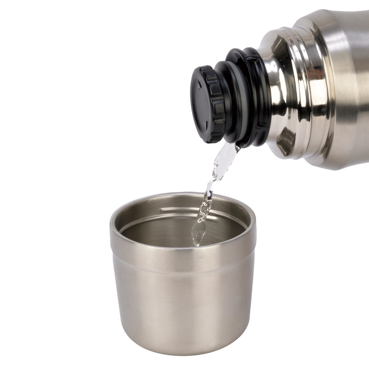 中空コップ付きで注いで飲めて、スクリュー栓で操作簡単。