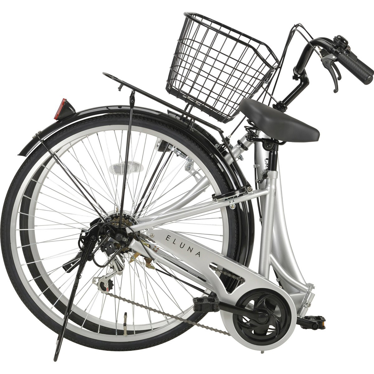 6段変速付き、前カゴ、ライト付きで軽快車としてお使いいただき、いざとなったら折りたたみ!