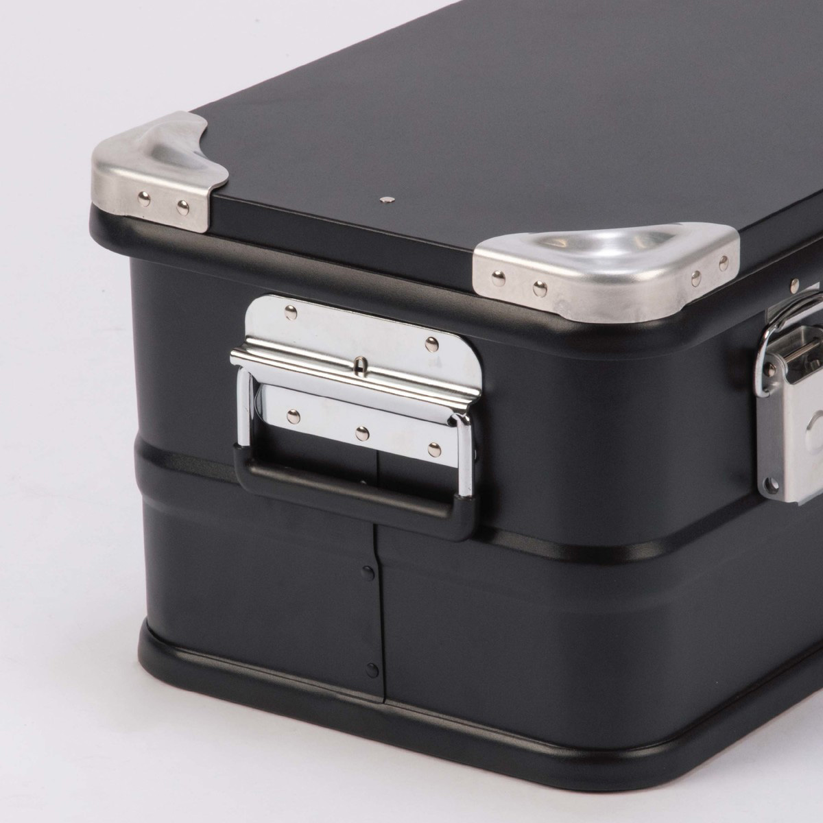屋内外問わず多用途に活躍するコンテナボックス。アウトドアではもちろん、家庭内の収納ケースとして様々なものを整理整頓するのに便利。軽量ながら耐久性に優れたアルミ製。コーナーガード付でスタッキングが可能。