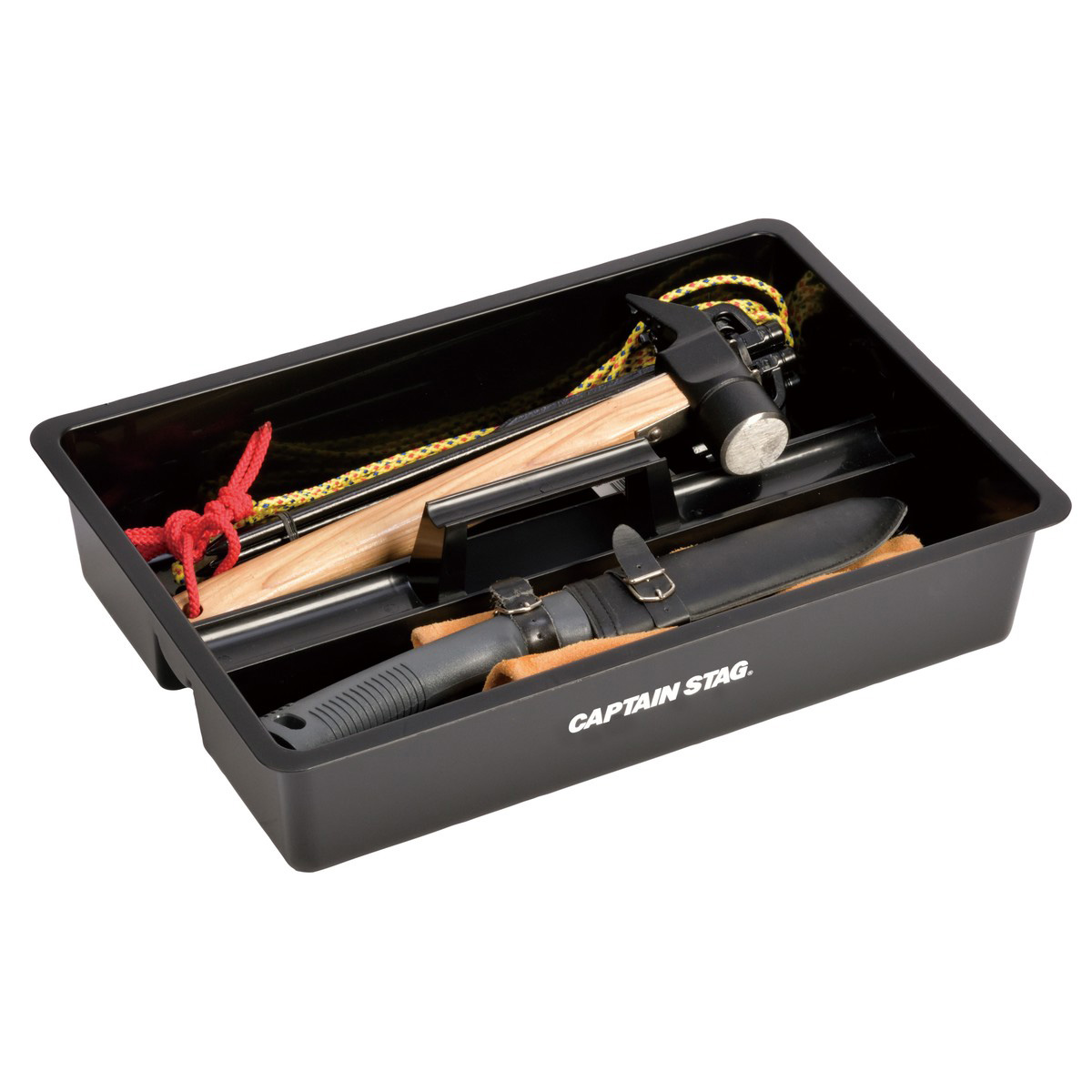 DIY用品やアウトドア用品の小物整理に便利なトレーです。