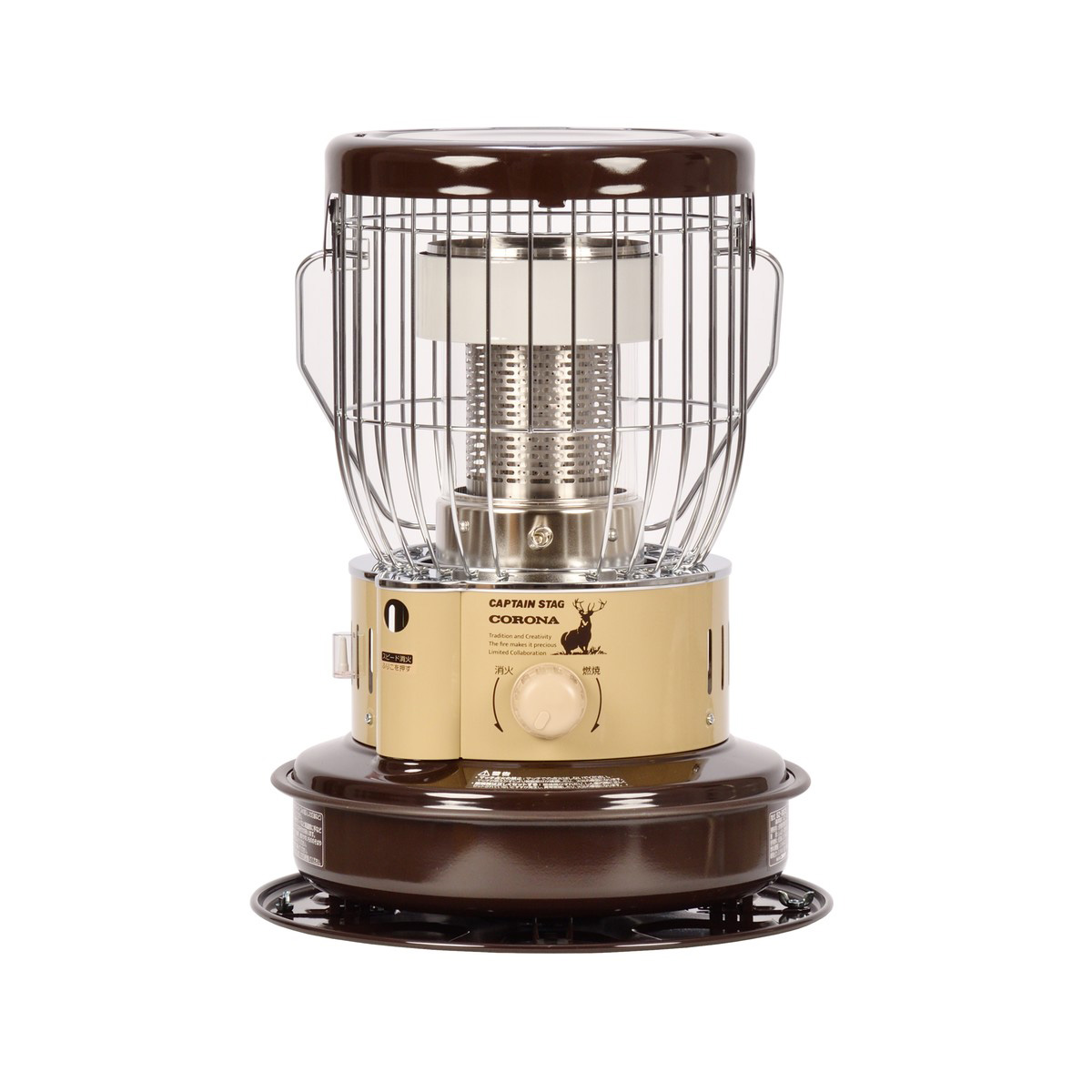 限定カラー「ベージュ/ブラウン」を採用したキャプテンスタッグ×コロナ 石油ストーブ SZ-32CS-CT を組み合わせた特別セットです。