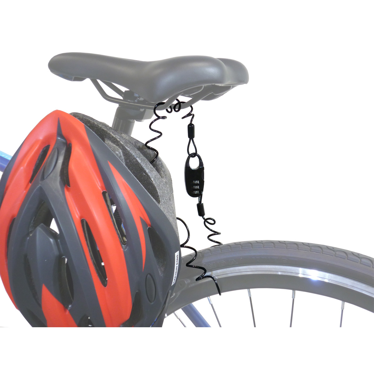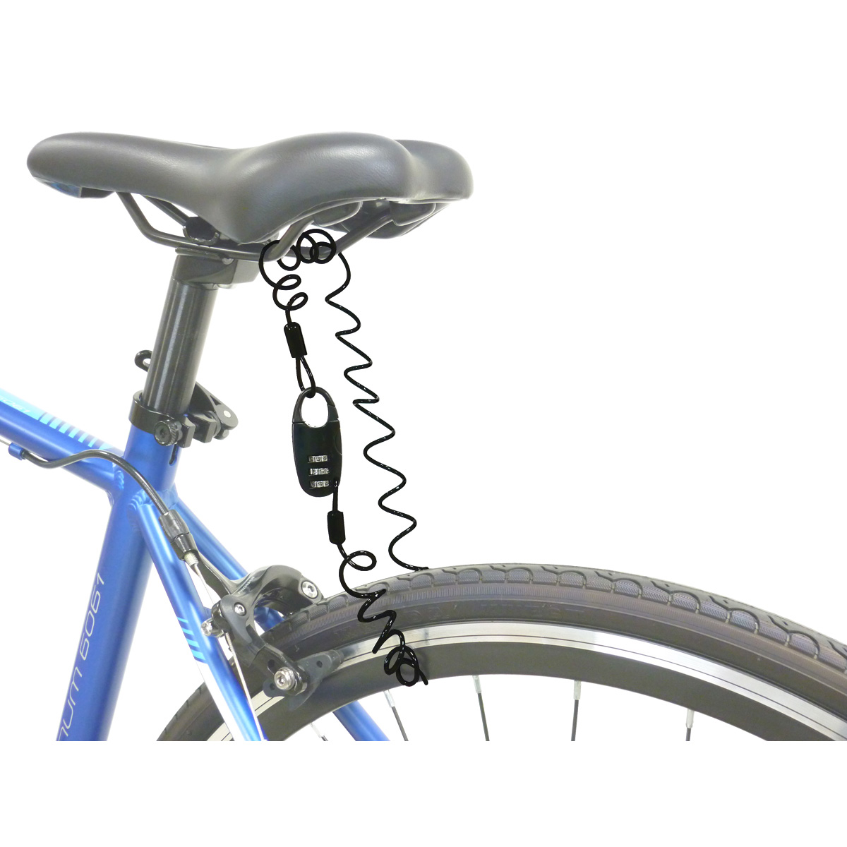 暗証番号の変更が可能な3桁ダイヤル式のコイルワイヤーロック。