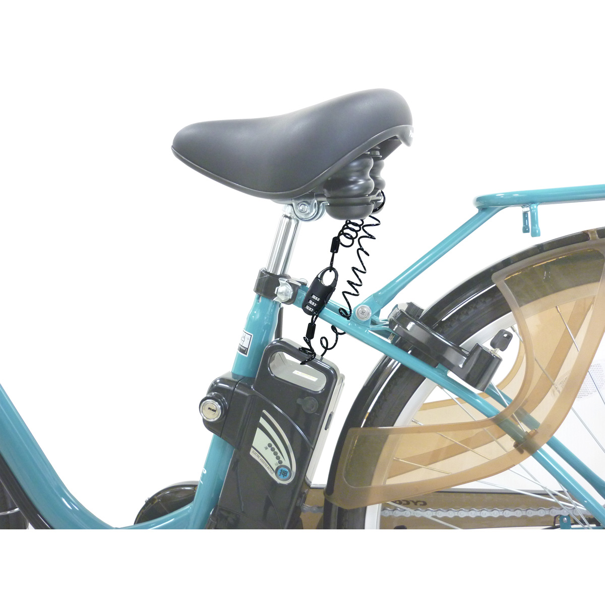 電動アシスト自転車のバッテリーロック、ヘルメットロックに最適。