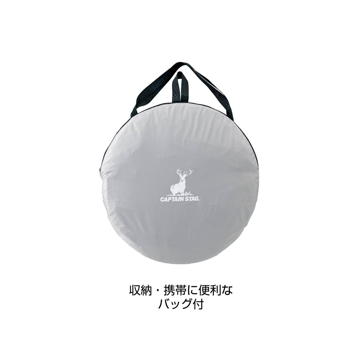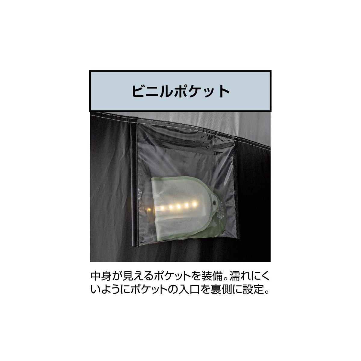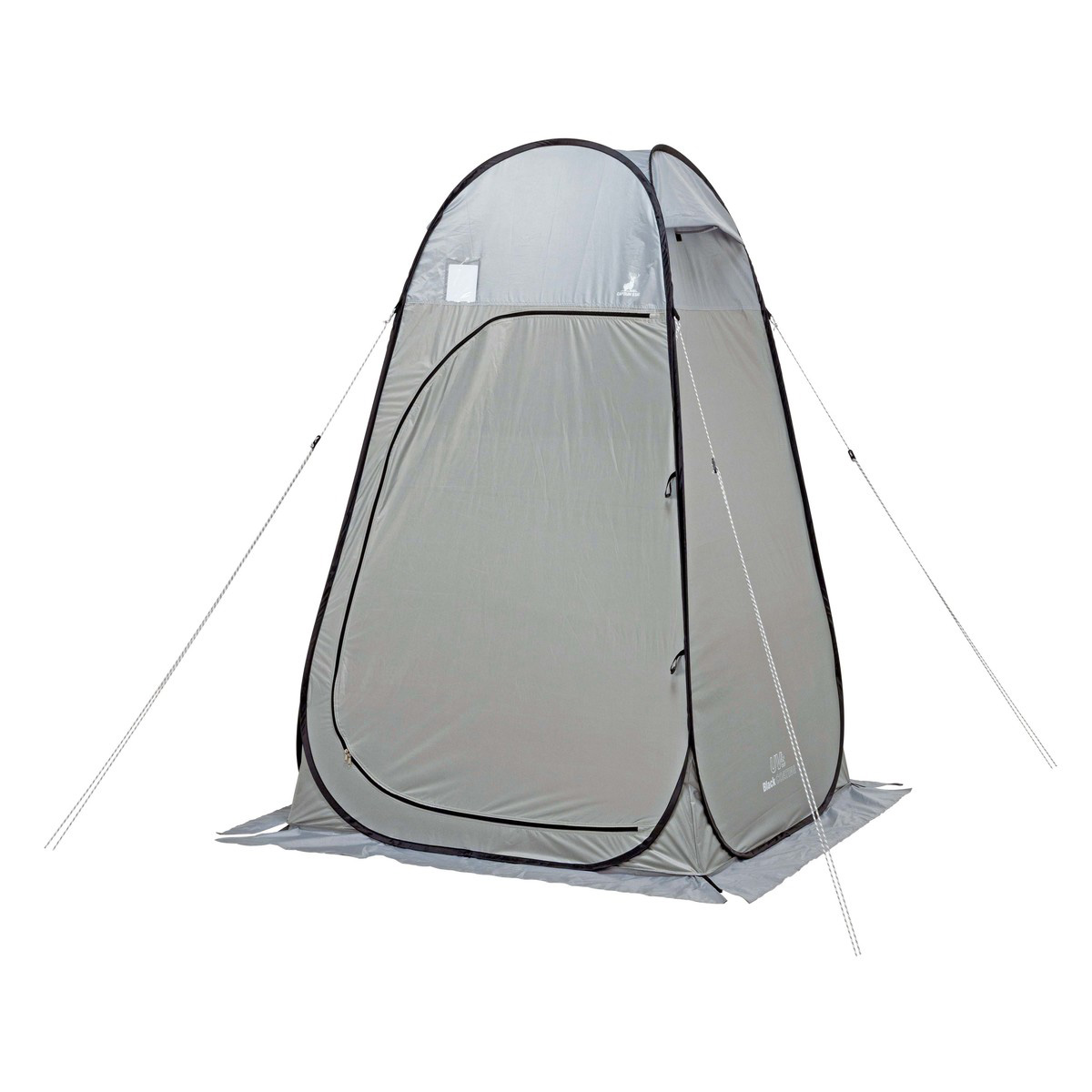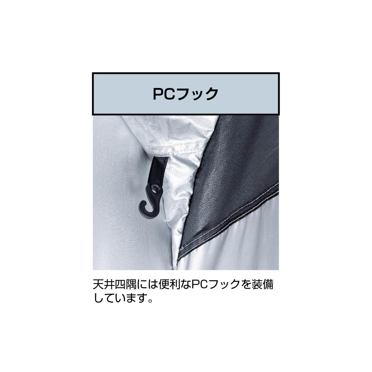 更衣室代わり、簡易トイレ、簡易シャワー室までこれ1張り。天井は明かりを取り込むシルバーコーティング、側面は透けにくいブラックコーティングでプライバシーを確保。防災時の簡易個室としても備えて安心です。