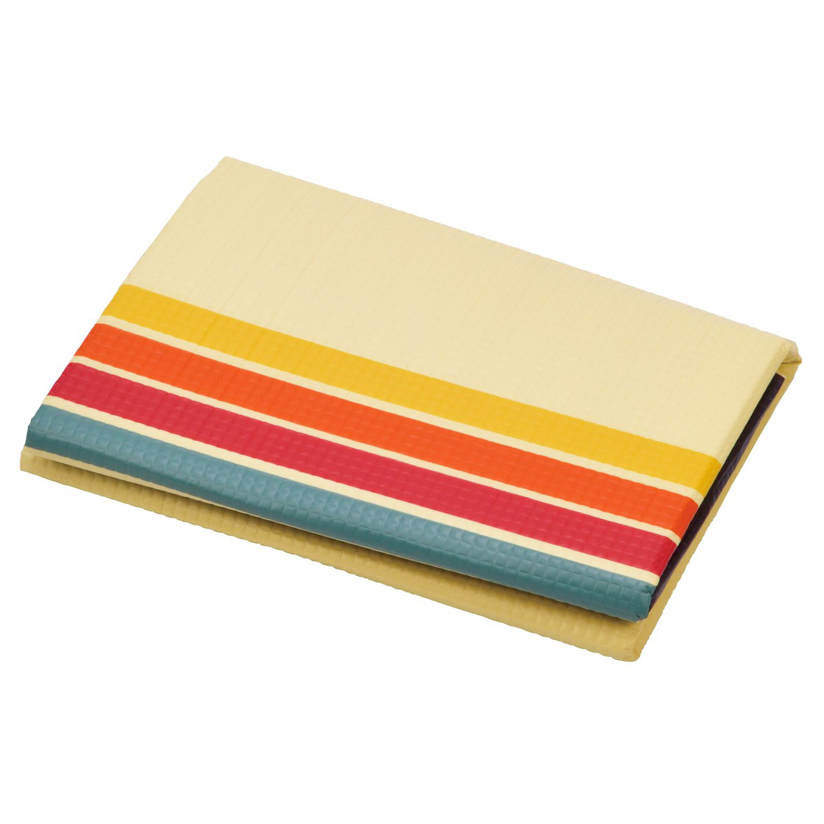 クッション素材で座りやすいレジャーシート。ペタ付かない艶消し表面加工。荷物置きにも便利です。裏面はアルミ加工で湿気や冷気を防ぎます。