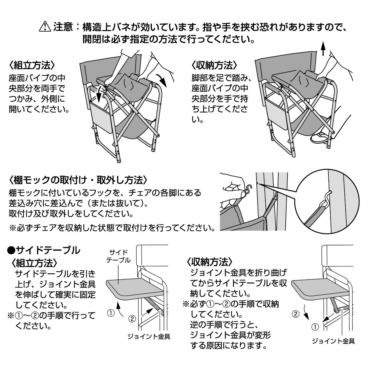 - 耐荷重/座面:80kg、棚部:2kg、サイドテーブル:2kg(均等)