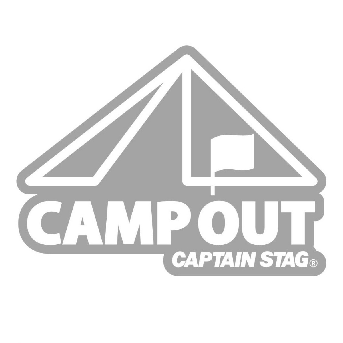 CAPTAIN STAGの人気シリーズ キャンプアウトのロゴステッカー。ノートPC、タブレットや収納ボックス、車のクォーターウインドウなどのデコレーションに。