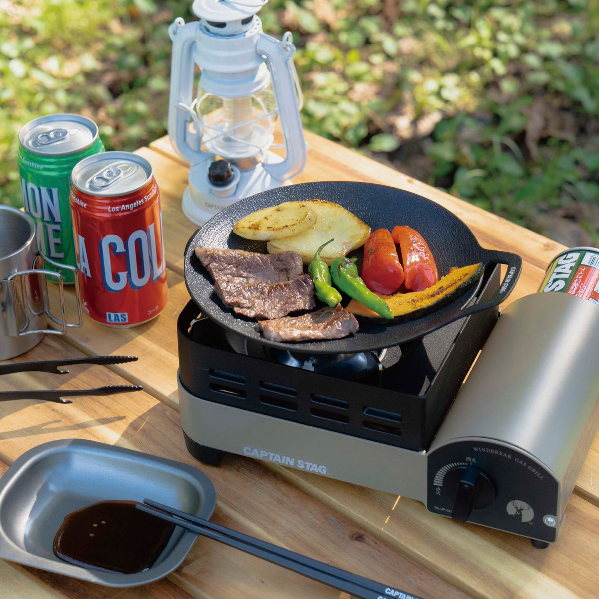 ソロ焚き火台・ジュニアタイプガスカセットコンロで使えるミニサイズのグリルパン。