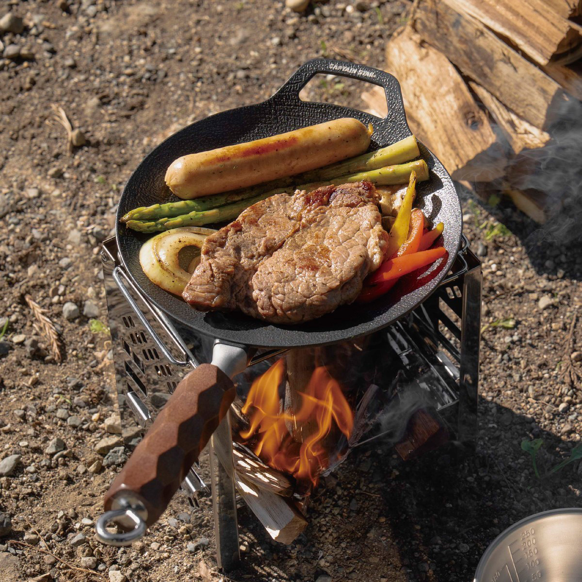 ガス火・焚き火・IH等、オール熱源対応で、キャンプでも自宅でもお使いいただけます。