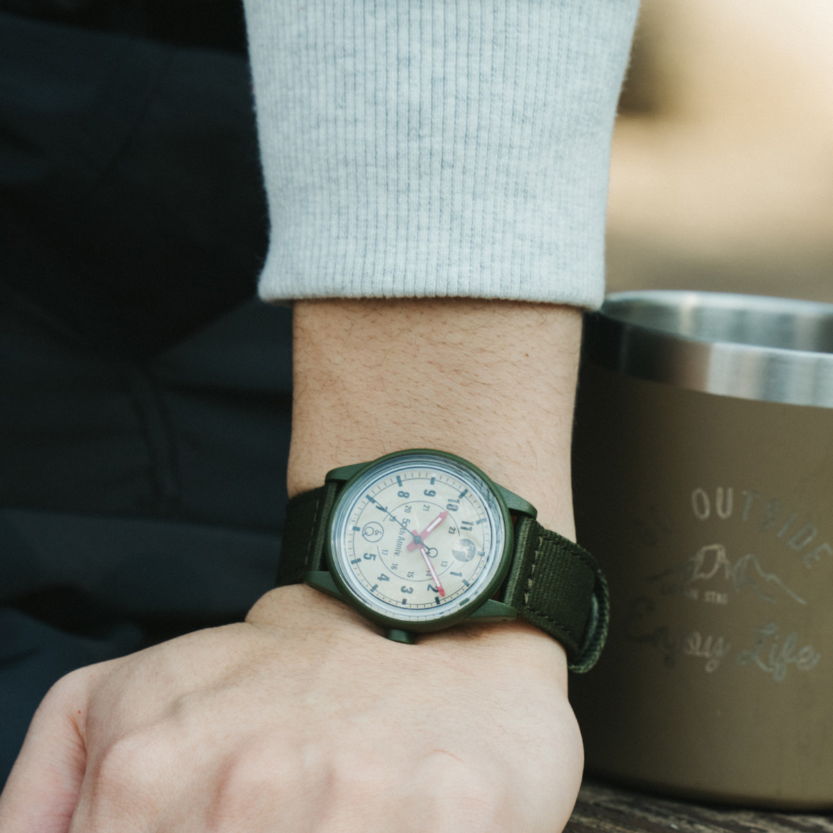 Q&Q Smile Solar×CAPTAIN STAG 50th Watch(Green/36mm)R01A-522VK